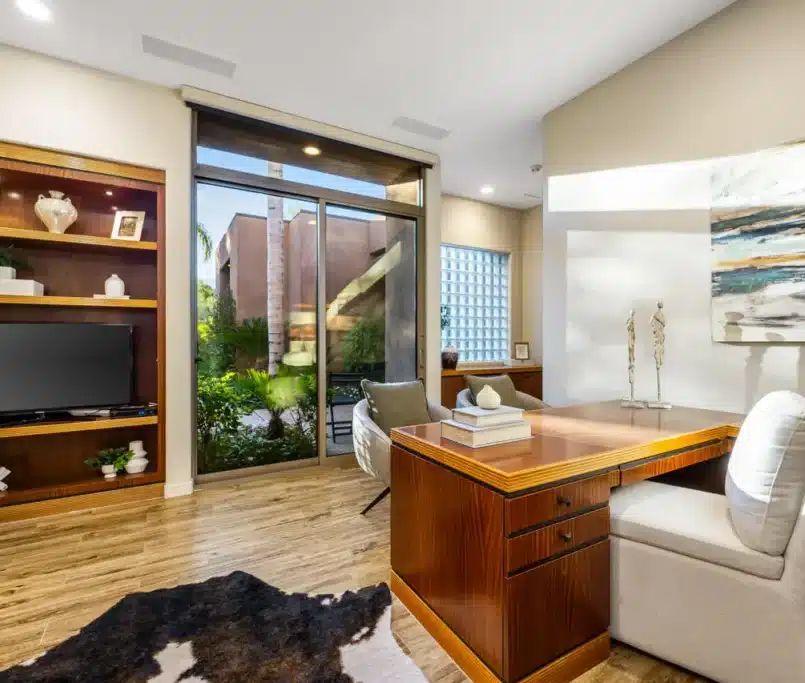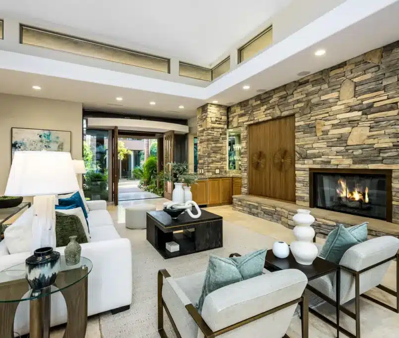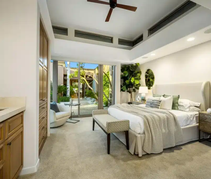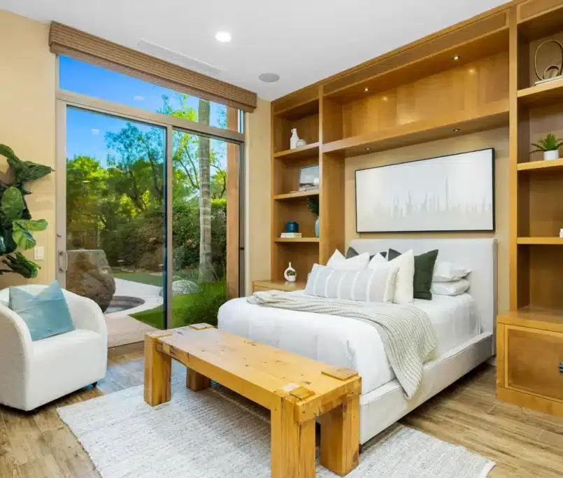 This soft contemporary design creates a serene and inviting atmosphere through a neutral foundation layered with texture and warmth. Natural linen fabrics and soft metallic accents bring a refined sense of comfort and sophistication, while subtle pops of olive green in the accessories, pillows, and artwork introduce an organic touch that grounds the space. The balance of clean lines, muted tones, and textured materials enhances both elegance and livability, resulting in an environment that feels modern yet timeless, fresh yet warmly welcoming.